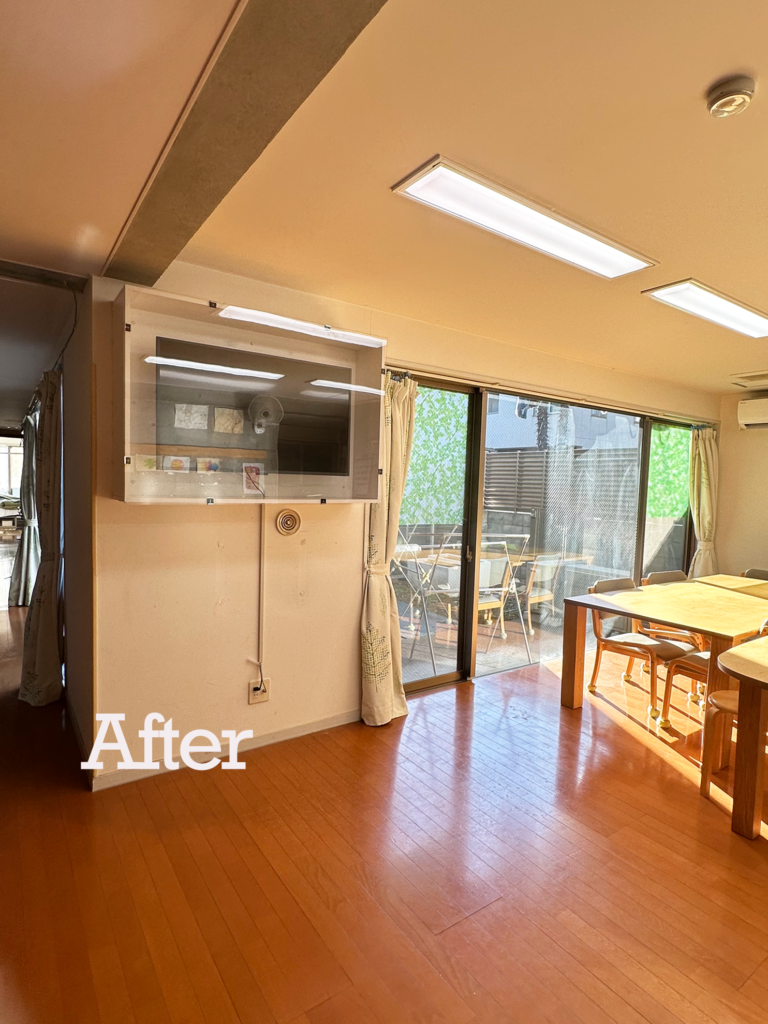 テレビの位置が高くなり、手が届かない位置へ。さらに、前面の保護カバーにより、直接触れることができないため、破損リスクを大きく軽減することができました。