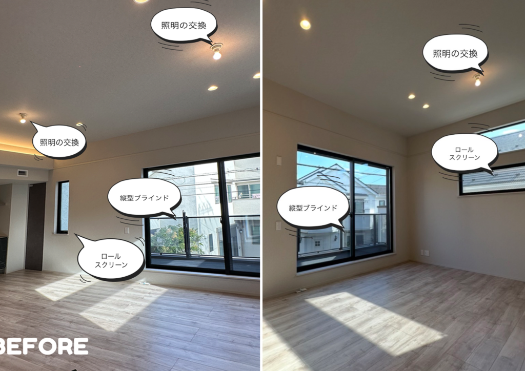 新築のお部屋で、まだ窓まわり・照明ともに未設置の状態でした。